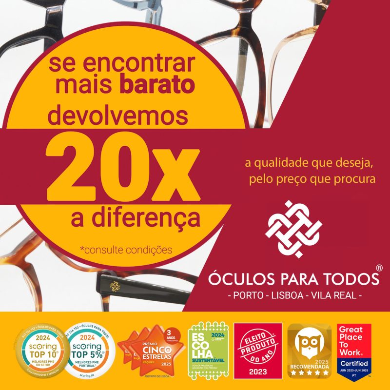*A devolução da diferença de preço da Óculos Para Todos tem por base os preços praticados nesta loja e valores concorrentes à exceção de valores em campanhas de descontos.